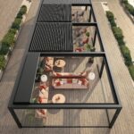egy megoldás, amely lehetővé teszi a szabad tér maximális kihasználását, miközben biztosítja a védelmet legyen szó akár napról, vagy esőről, vagy kíváncsi tekintetekről. A síneken mozgatható, edzett üveg panelek tükrözött, szatinált vagy füstszínű kivitelben is elérhetők.”