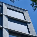 Schenker által gyártott ZIP rendszerű, un. szélálló homlokzati vászonárnyékolók