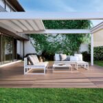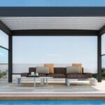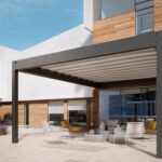 Vízhatlan vászonfedésű alumínium pergola behúzható vászonnal szabadon álló kivitelben