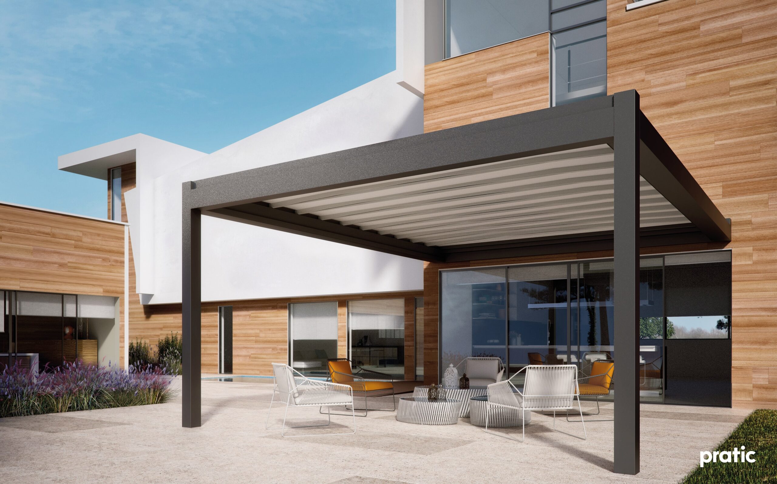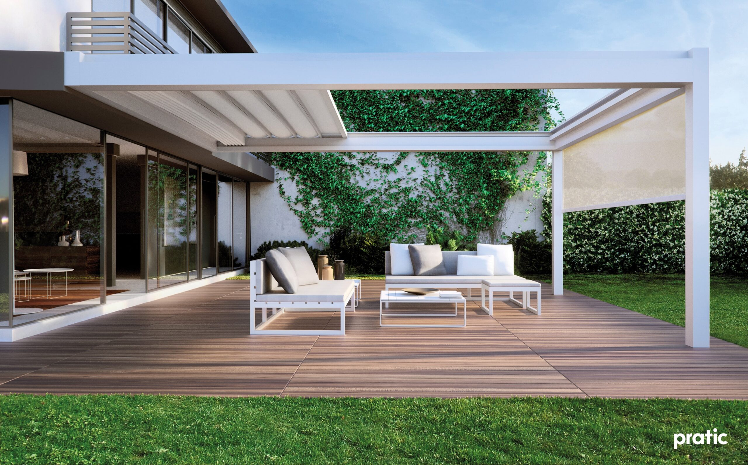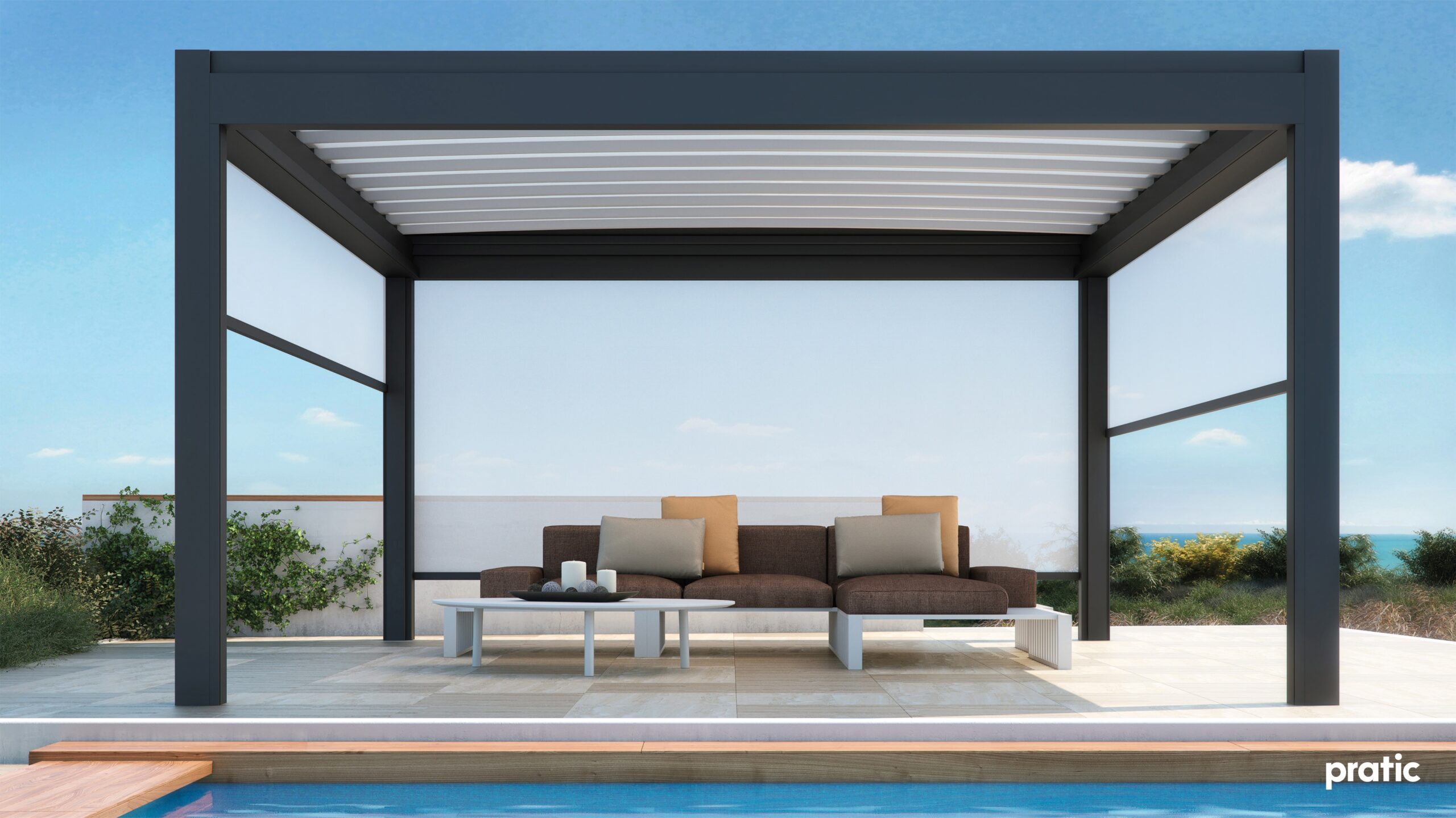 Vízhatlan vászonfedésű alumínium pergola behúzható vászonnal szabadon álló kivitelben